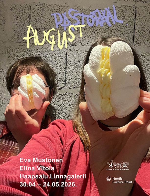Eva Mustoneni ja Elīna Vītola koostöö sai alguse mõned aastad tagasi koos ette võetud karavanireisist mööda Lõuna-Läti maanteid. Muserdavad mõtted ja väljavaated saatsid kunstnikud romantiseeritud vabaduseotsingutele, ning renditud karavan paistis pasliku sümbolina nende kaootilistele eludele. Esimeseks peatuseks sellel teekonnal sai 2022. aastal Võrus Kanal galeriis toimunud näitus „Reispass tundmatusse: väljaspool hooaega“. Haapsalus vormub lahti reisi järgmine peatükk „Pastoraal: august“, kus jõutakse saagi koristamise ja puhkuste, külluse ja määndumise aastaaega. Kaduvuse kuul klõbisevad köökides purgikaaned ja aedades koolduvad kroonlehed. Käes on hetk, mil lopsakus on piiritu, samas hakkab küpsus vaikselt hääbuma. On ainult mälestused, mis jäävad.